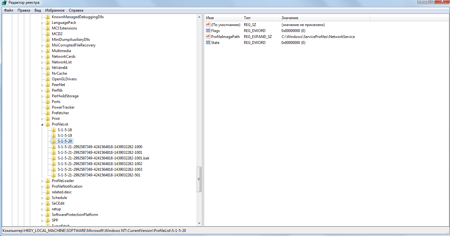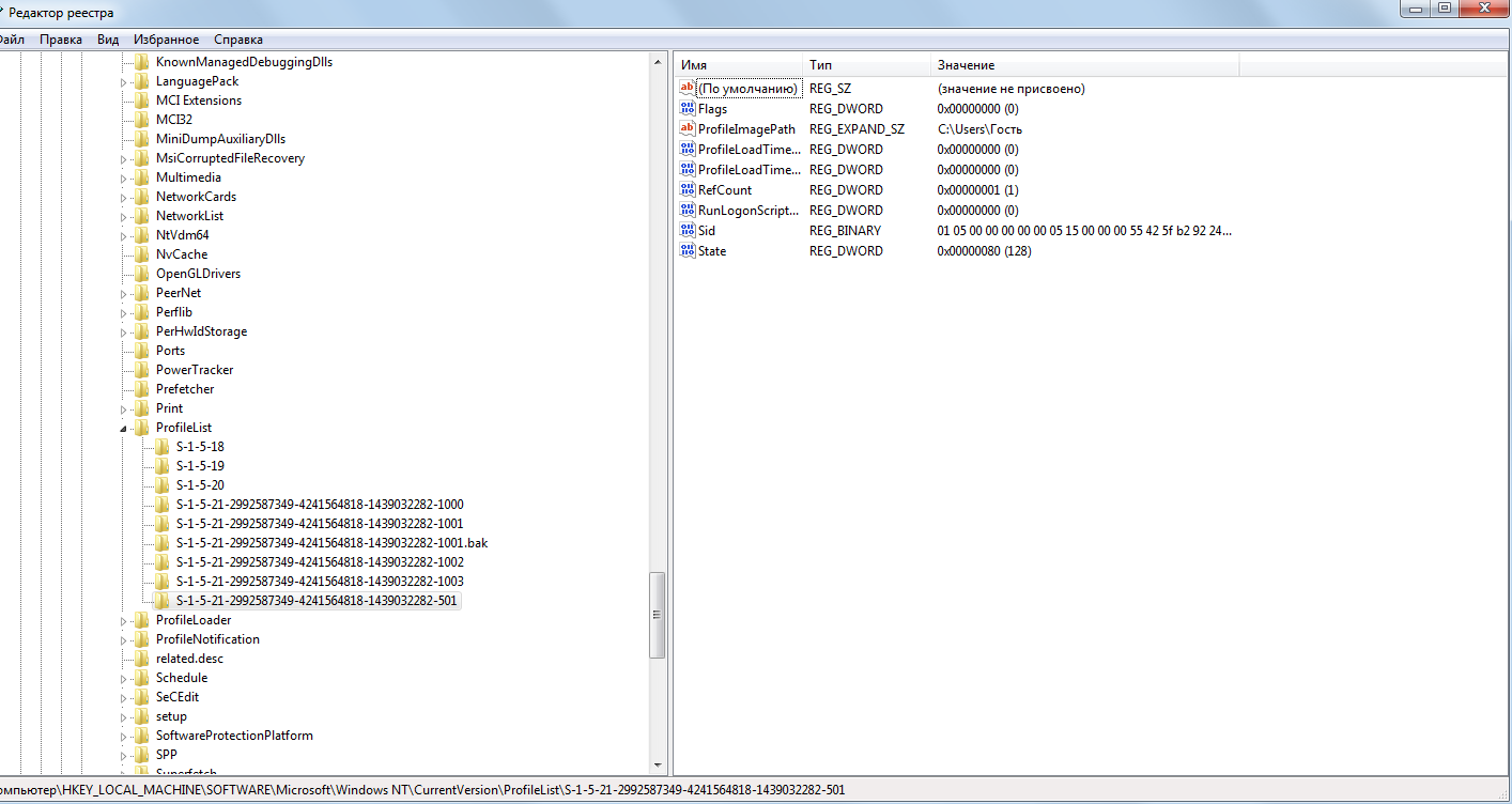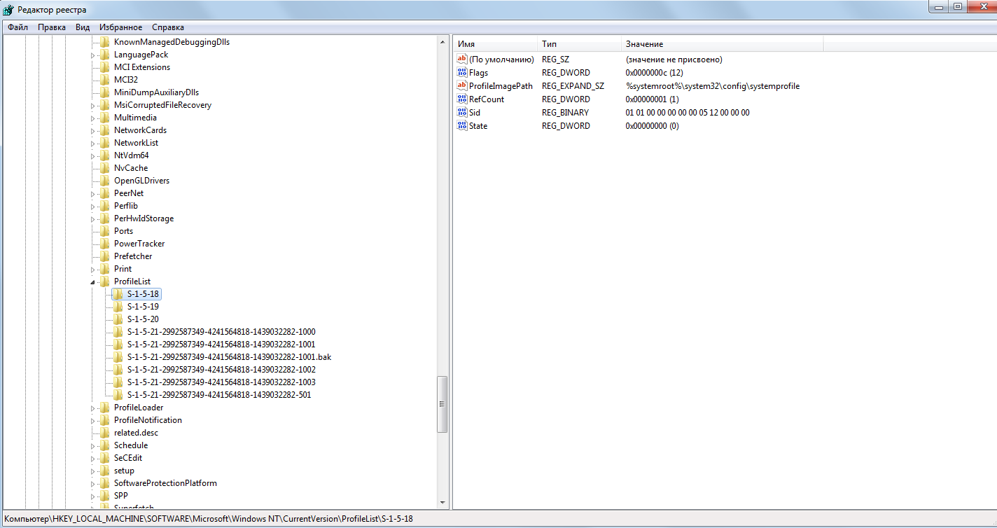 вот скрин шот этой ветки реестра HKEY_LOCAL_MACHINE\SOFTWARE\Microsoft\Windows NT\CurrentVersion\ProfileList!