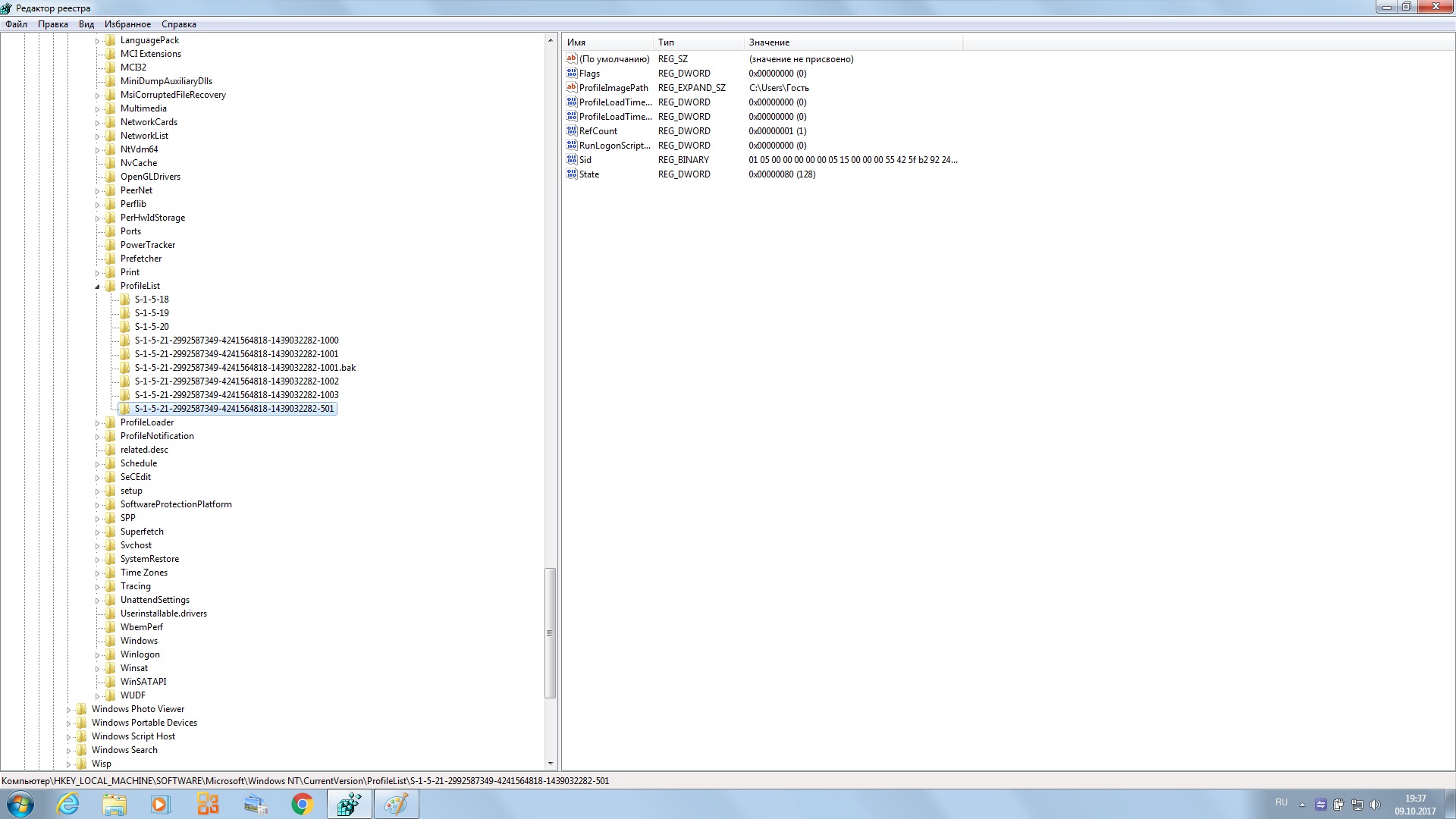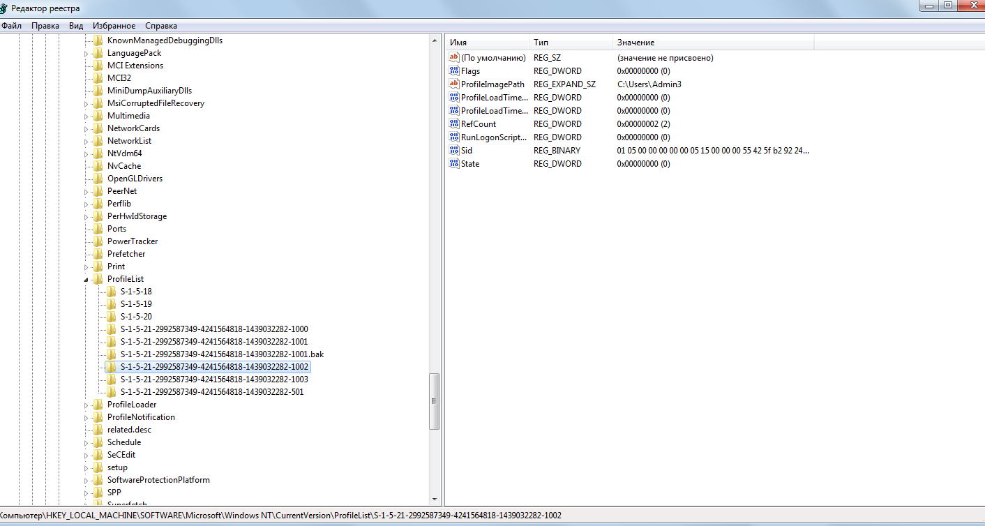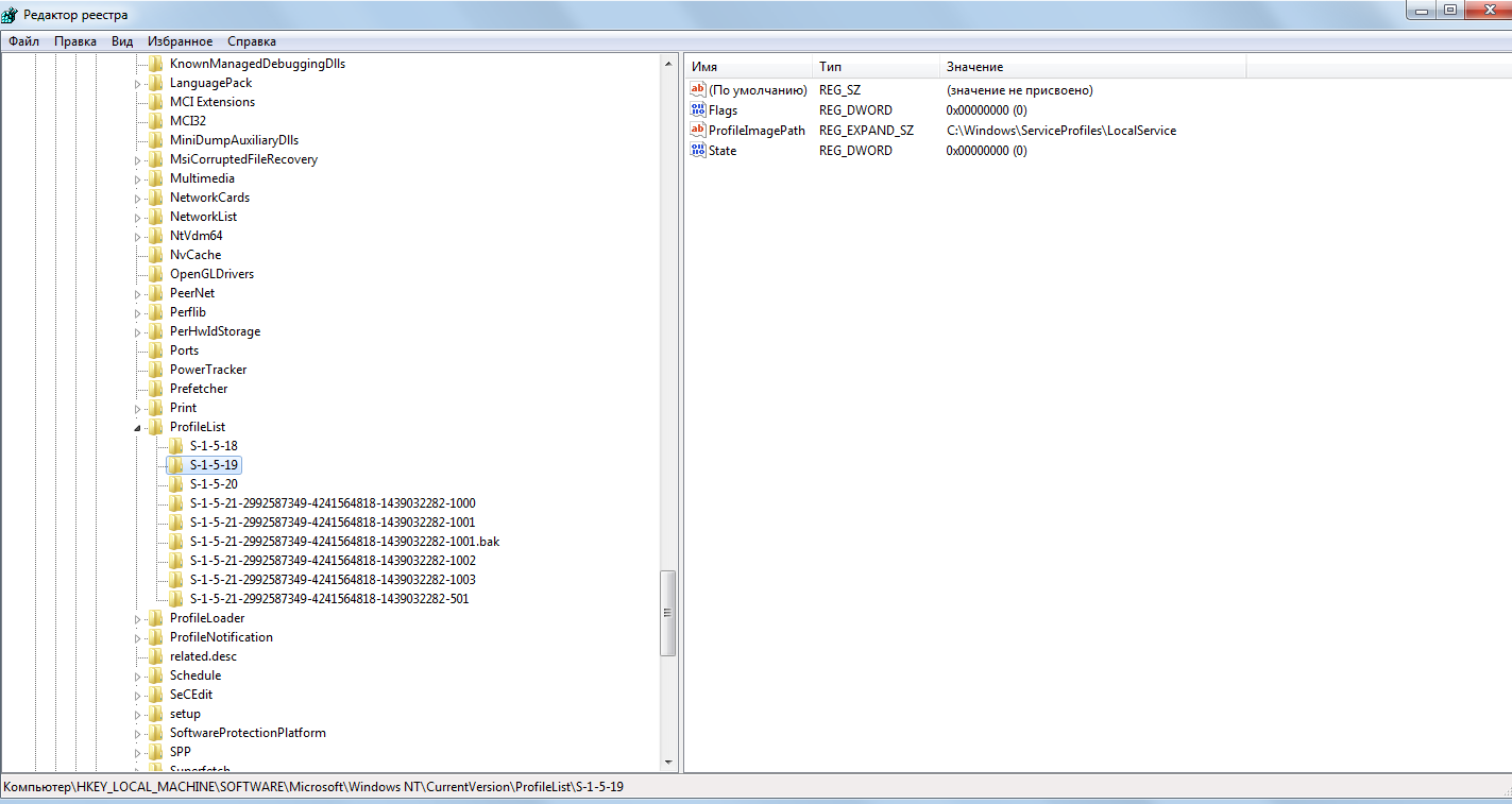 вот скрин шот этой ветки реестра HKEY_LOCAL_MACHINE\SOFTWARE\Microsoft\Windows NT\CurrentVersion\ProfileList!