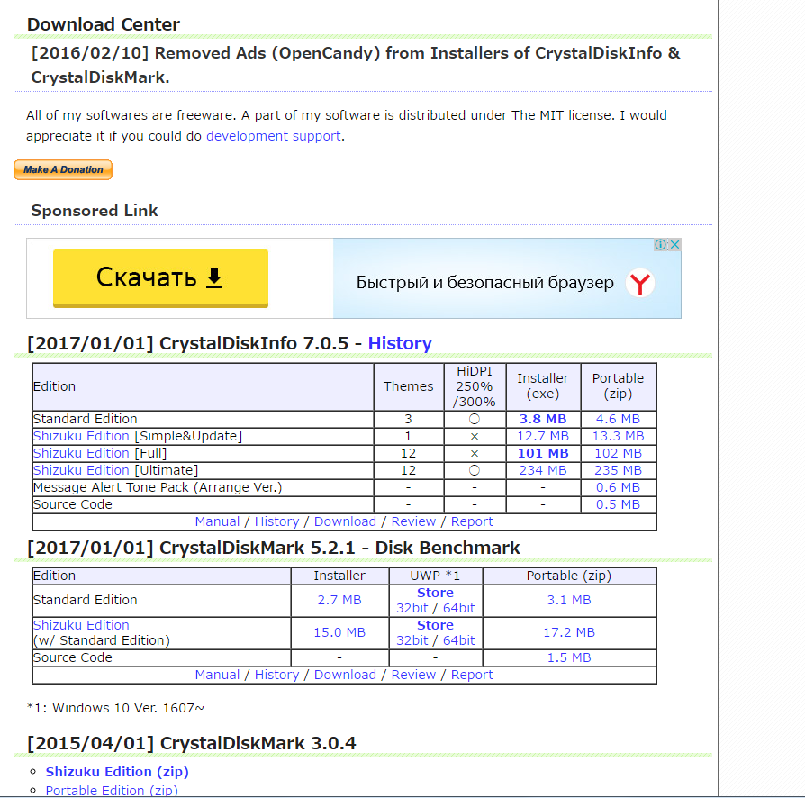 я хочу скачать CrystalDiskInfo но не знаю какую ! там на официальном сайте несколько версий и не поймешь какая для чего CrystalDiskInfo 7.0.5 - History и Shizuku Edition [Full] и Message Alert Tone Pack (Arrange Ver.) и CrystalDiskMark 5.2.1 - Disk Benchmark Какая нужна ? ![]() Цитата: