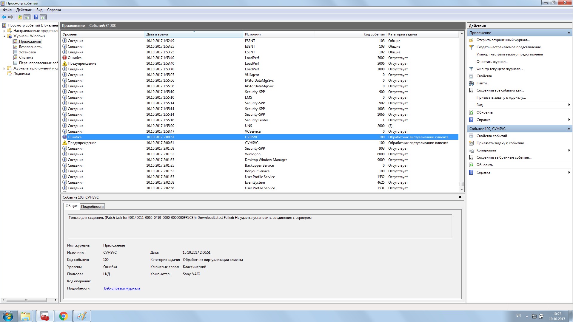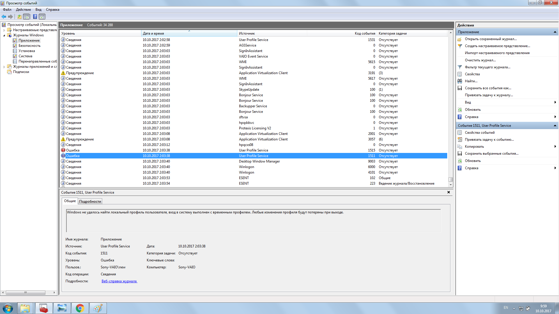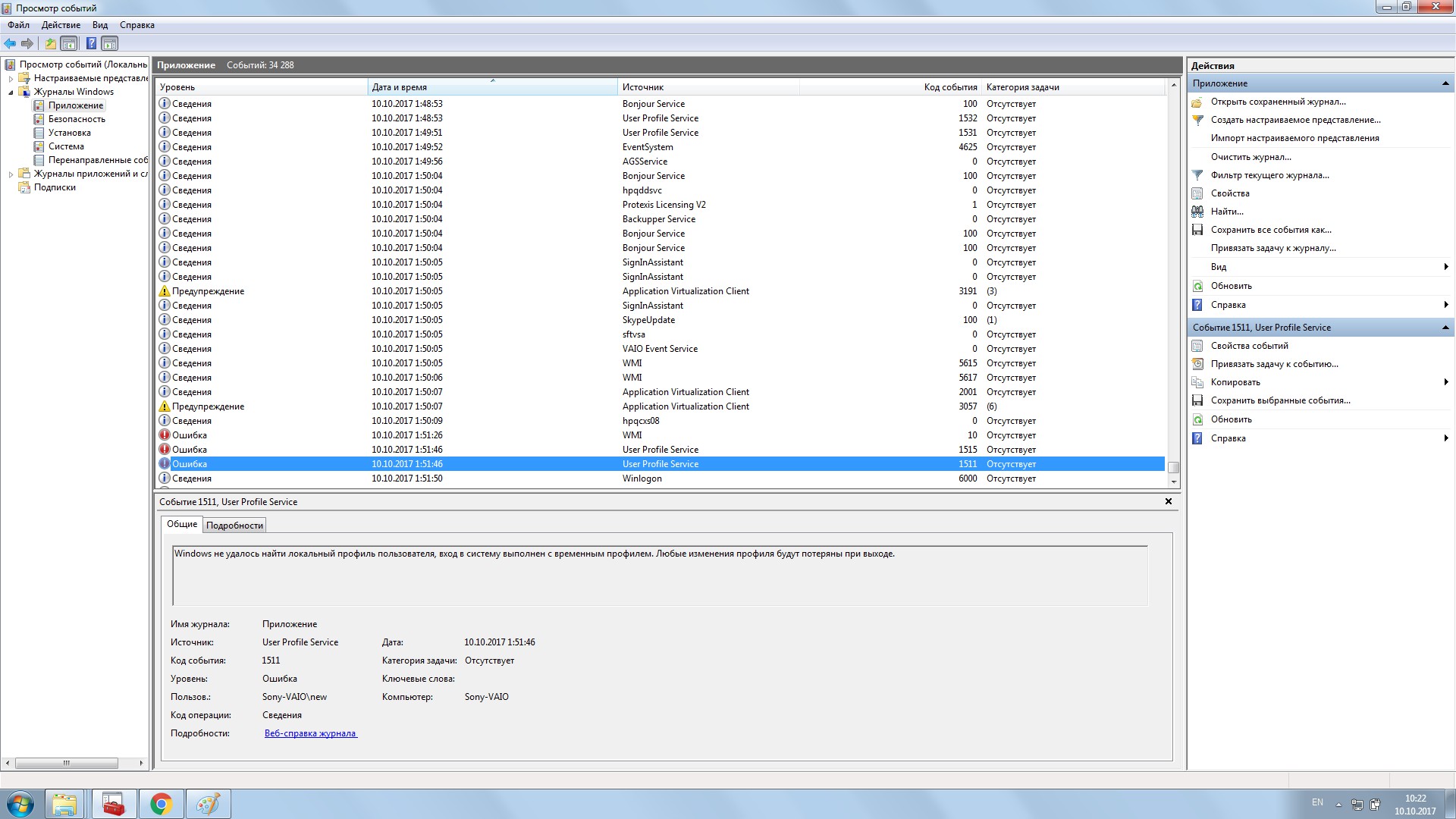 вот ошибки от источника User Profile Service начиная с 19:00 вчерашнего вечера а вот вообще все предупреждения и ошибки от разных источников начиная со вчерашнего вечера с 19 :00 |