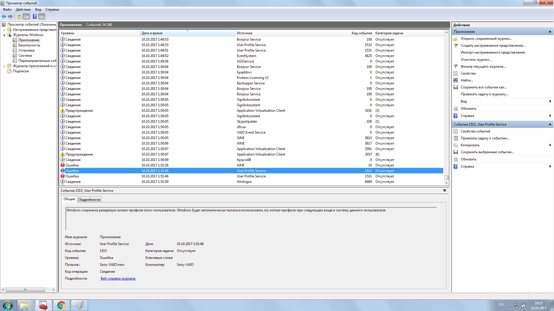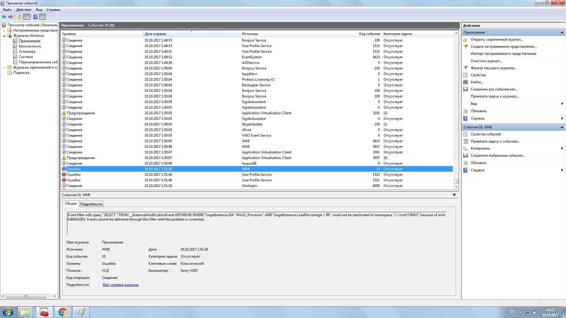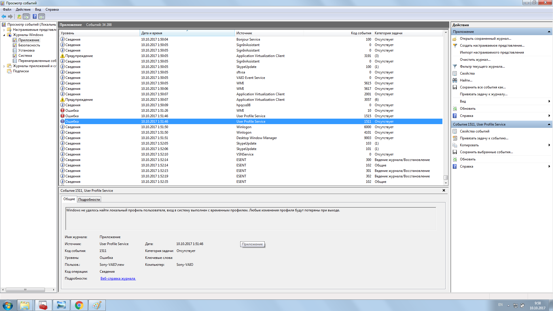 вот ошибки от источника User Profile Service начиная с 19:00 вчерашнего вечера а вот вообще все предупреждения и ошибки от разных источников начиная со вчерашнего вечера с 19 :00 |