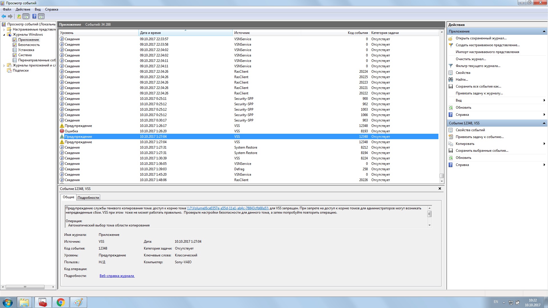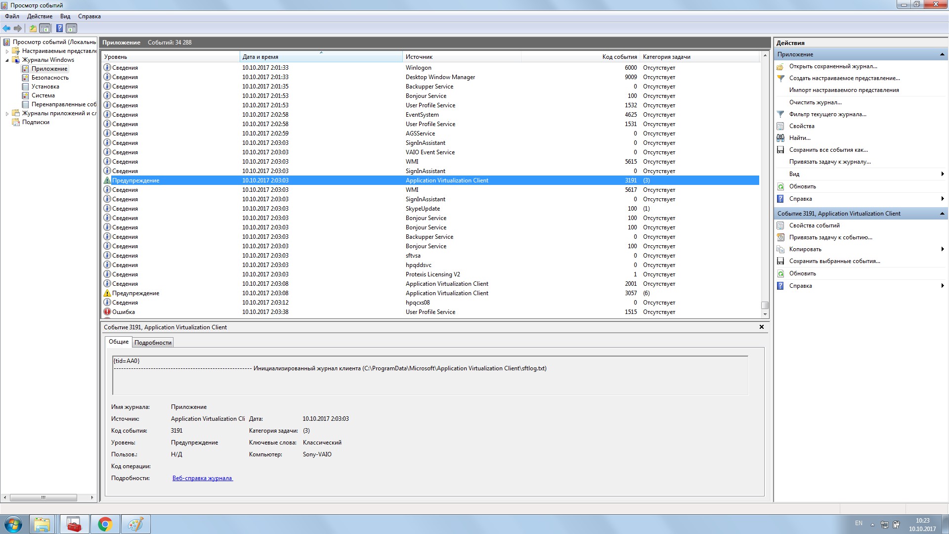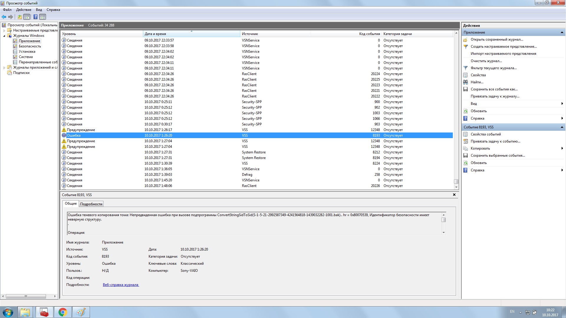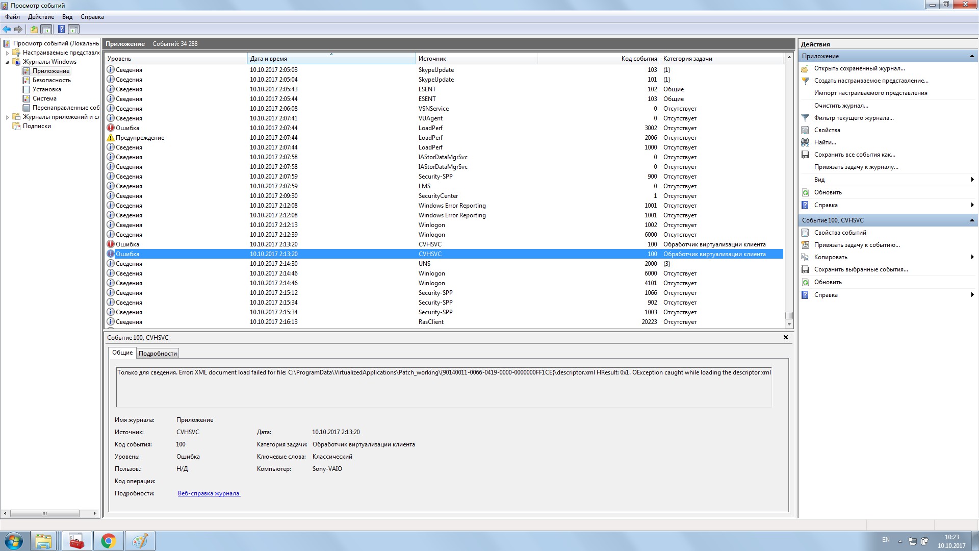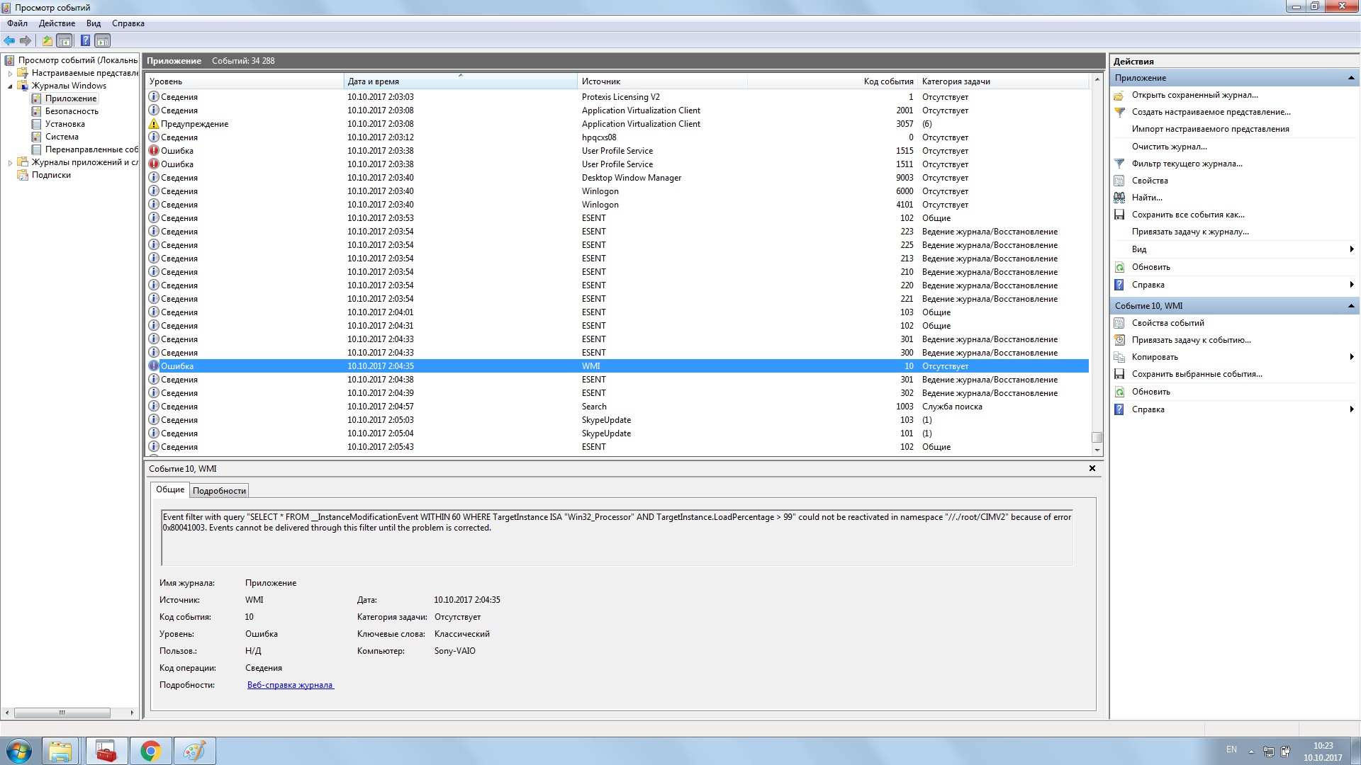 На журнале Приложение правой кнопкой мыши -> Сохранить все события как -> в формате EVTX. Получившийся файл заархивируйте и выложите. |