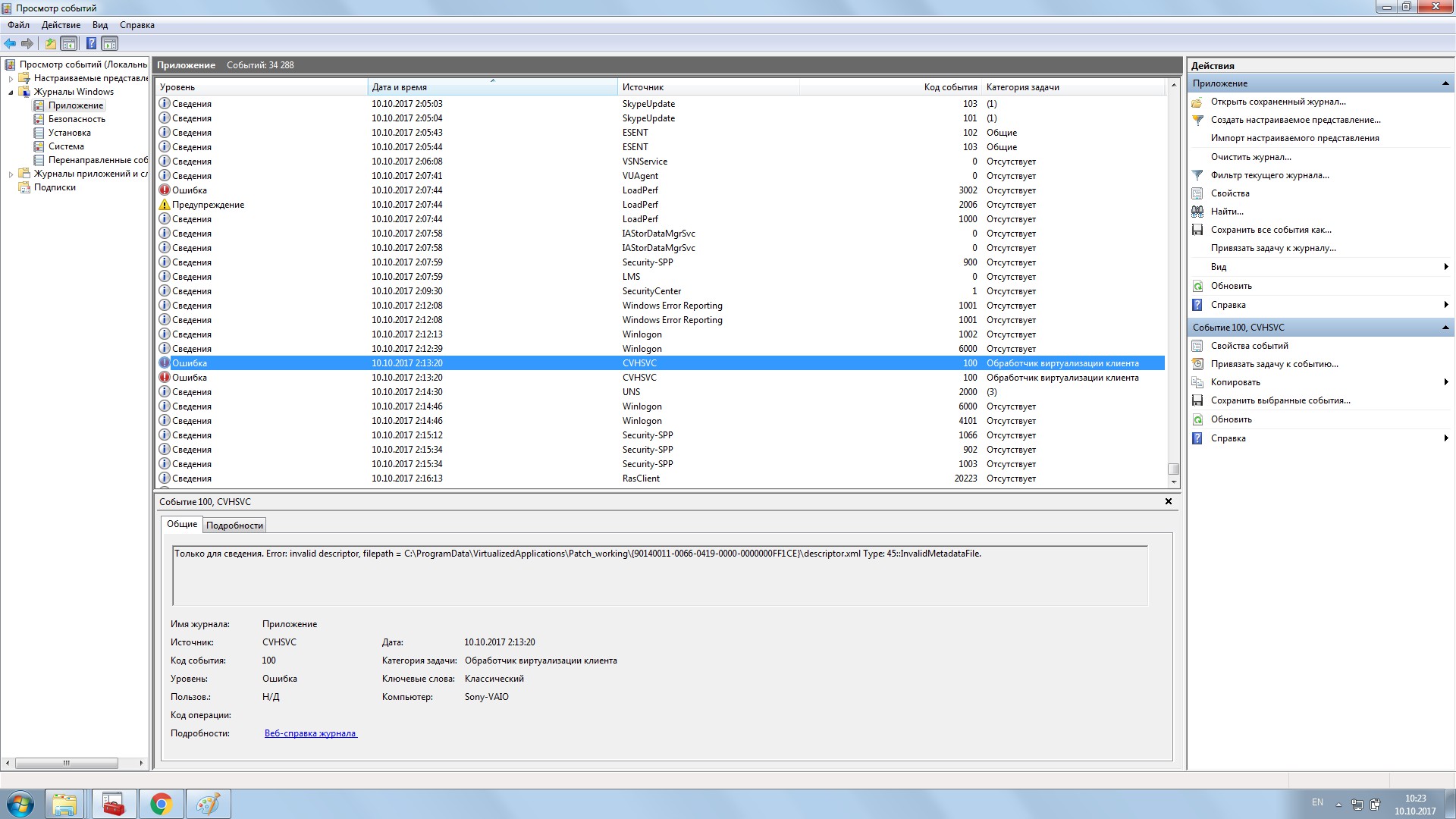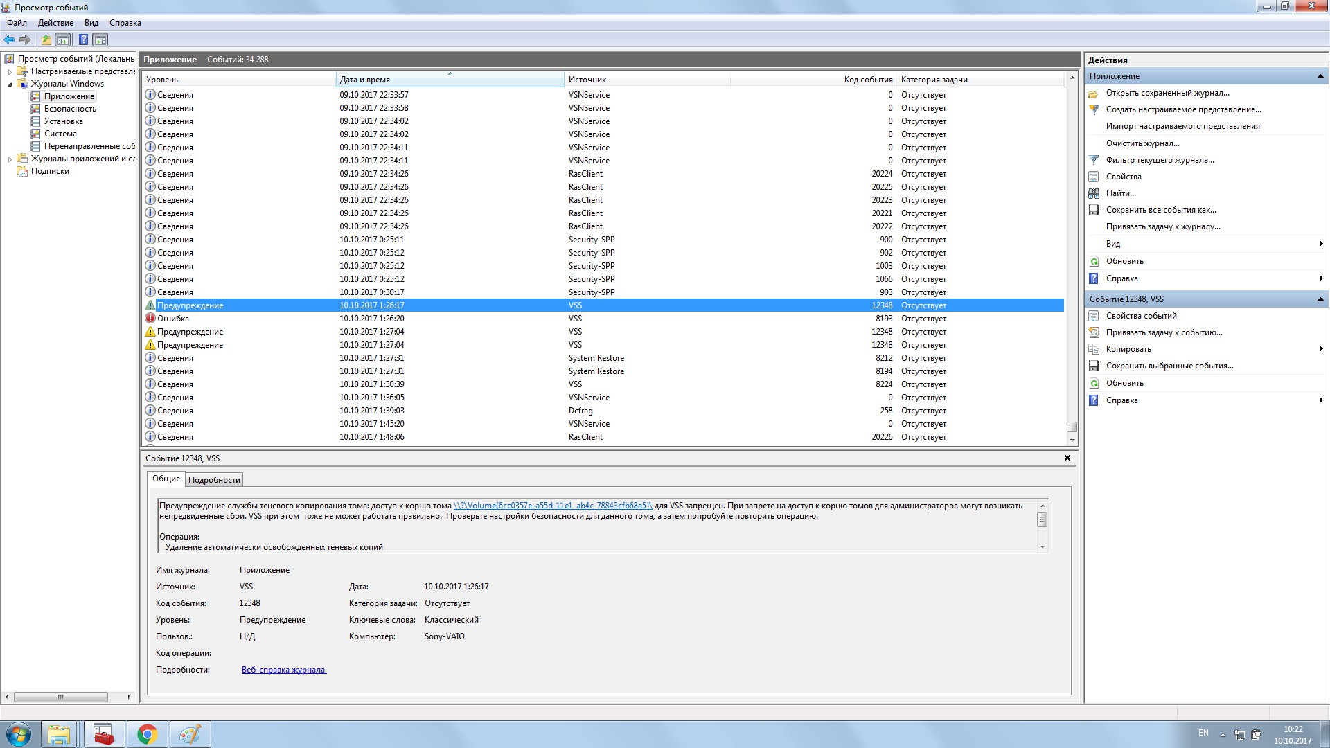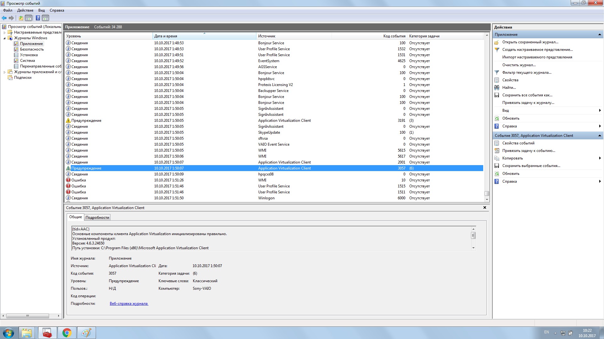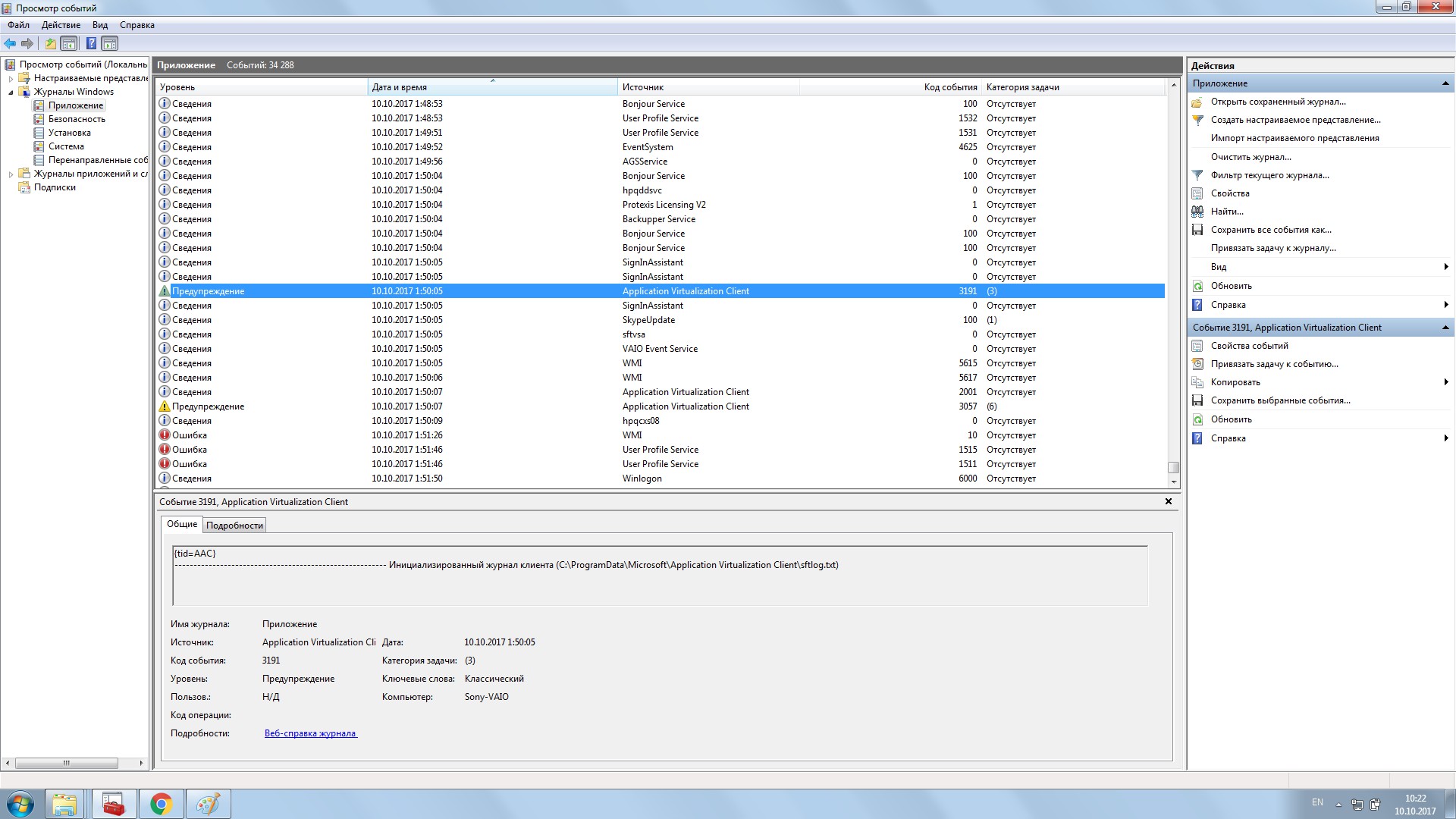 На журнале Приложение правой кнопкой мыши -> Сохранить все события как -> в формате EVTX. Получившийся файл заархивируйте и выложите. |