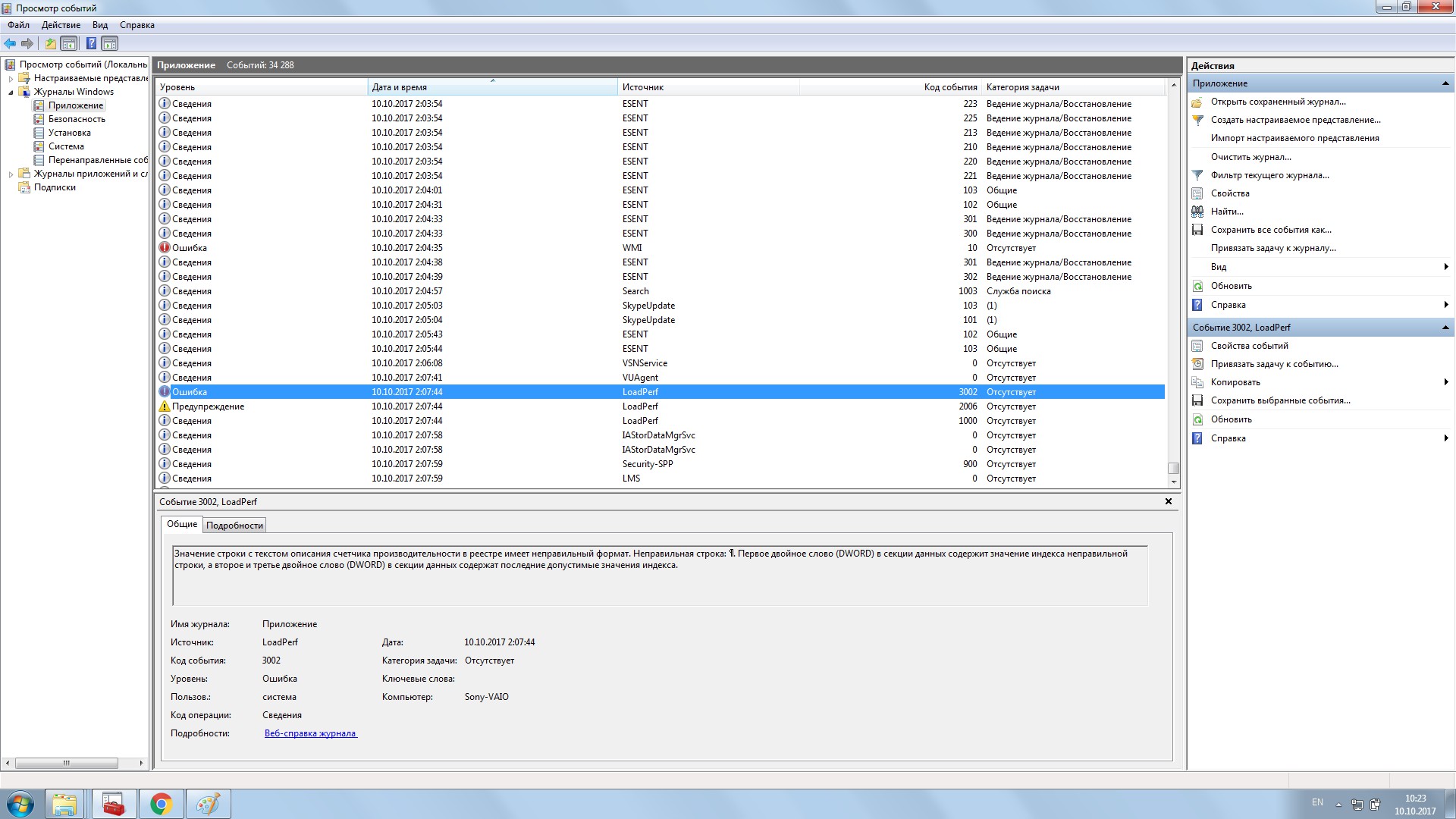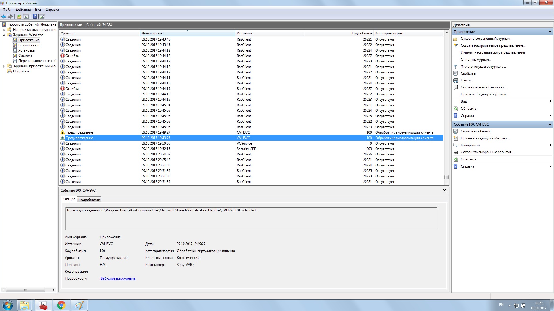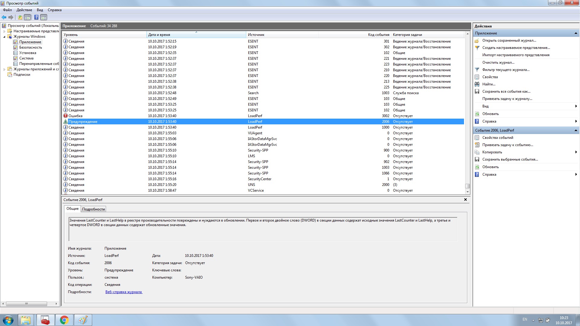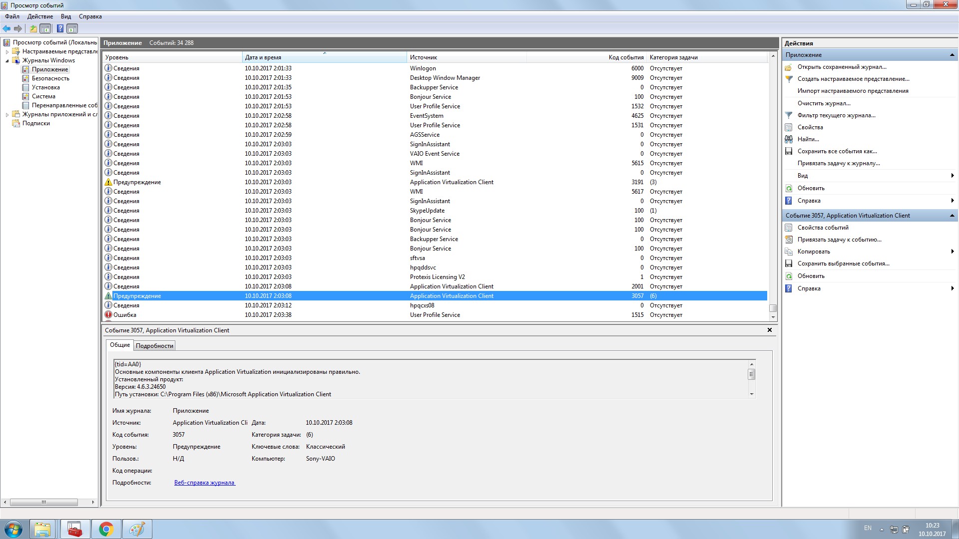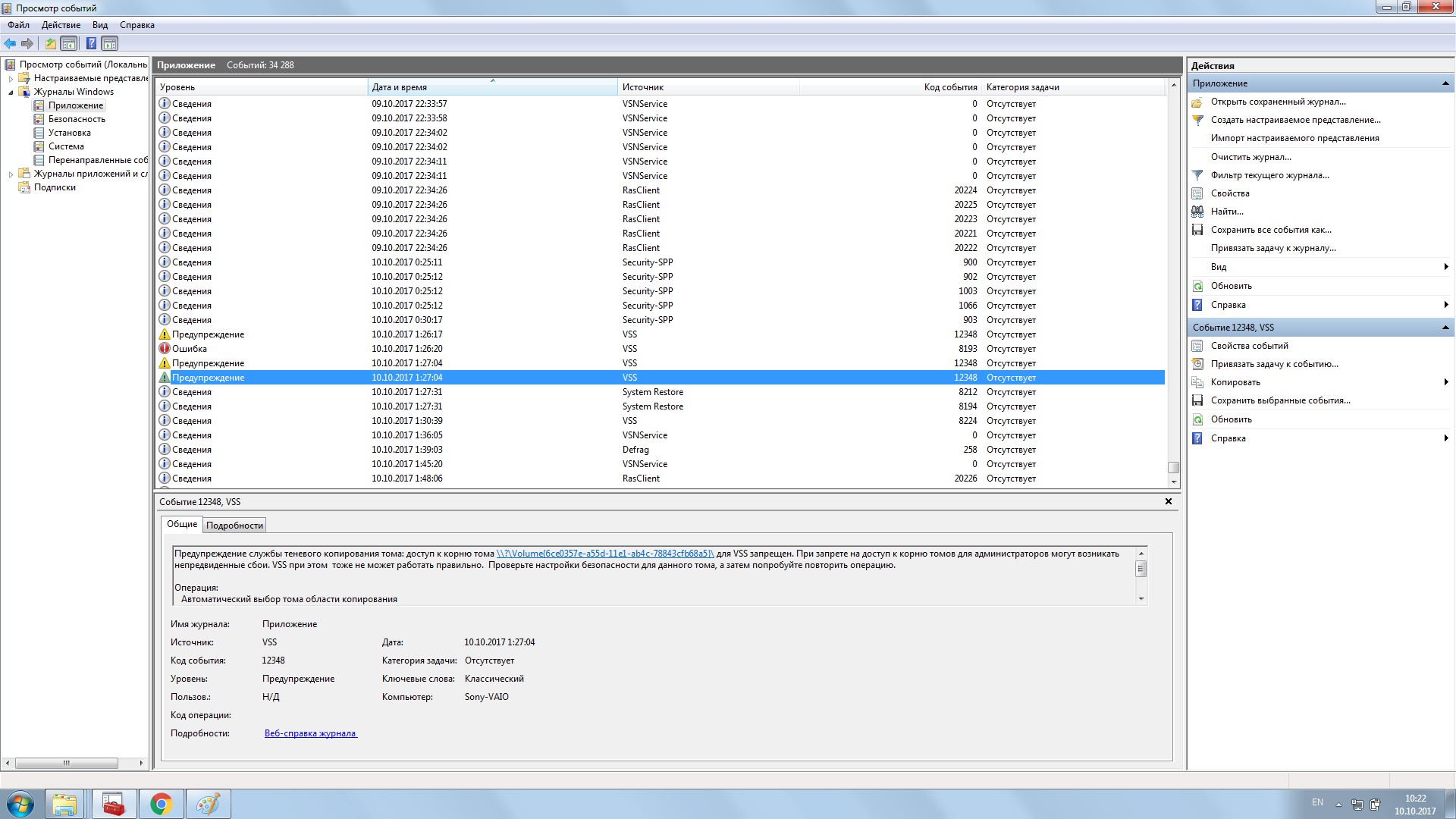 На журнале Приложение правой кнопкой мыши -> Сохранить все события как -> в формате EVTX. Получившийся файл заархивируйте и выложите. |