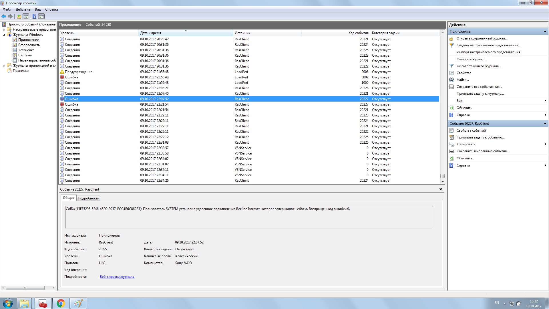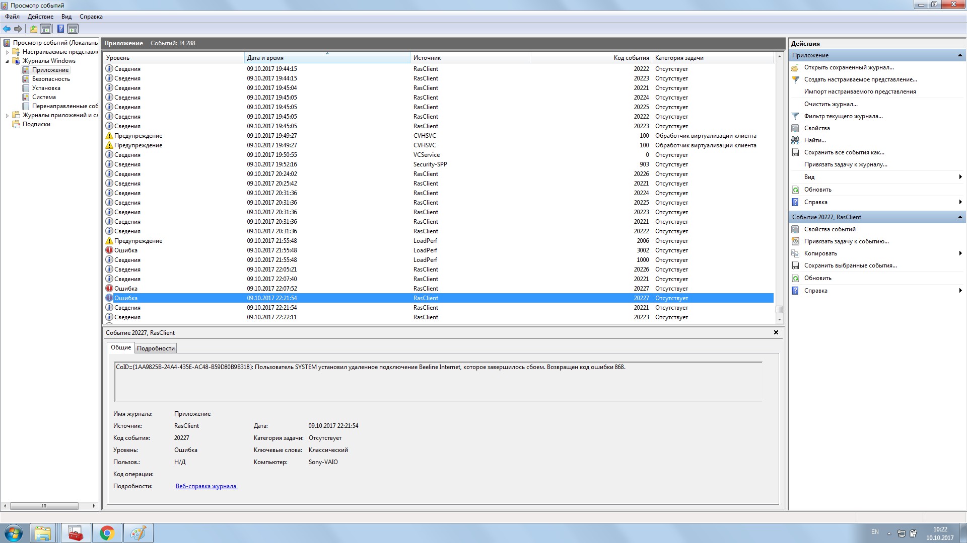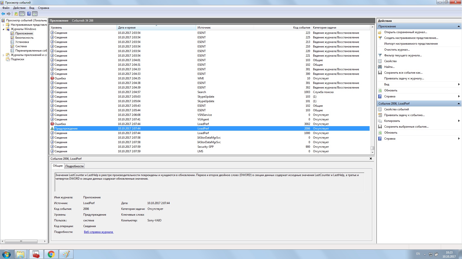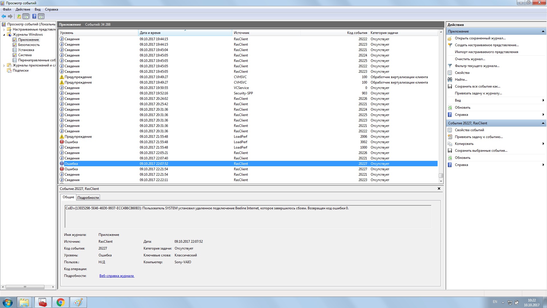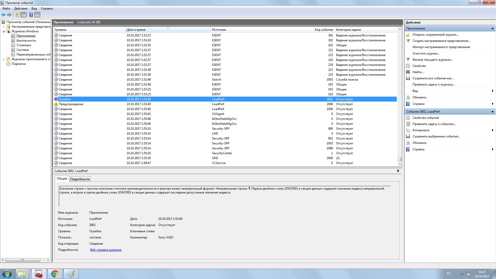 На журнале Приложение правой кнопкой мыши -> Сохранить все события как -> в формате EVTX. Получившийся файл заархивируйте и выложите. |