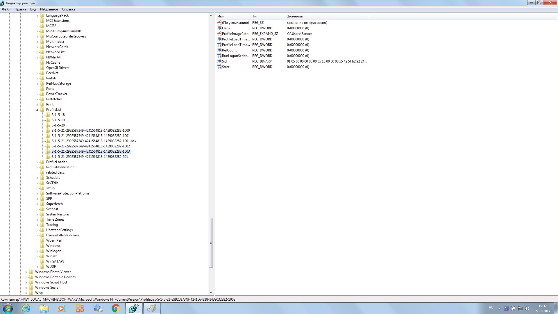 Сделайте скриншоты остальных профилей в реестре. То есть 1000 , 1001 , 1002 и так далее ... |