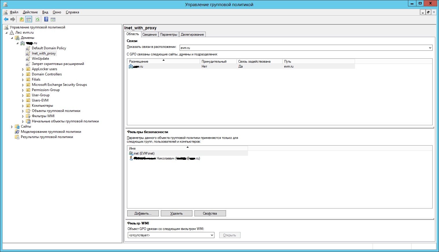 После добавления группы прошедших проверку, политика стала применяться на весь домен. Мне нужно только на определенную группу, буквально 5-7 человек ппц, это добавление группы вызвало просто бум во всем офисе и филиалах... у меня прокси включился везде, а когда политику отключил, он не отключился и пришлось ручками ручками всем выключать галочку..... жесть просто.... а я ведь знал что будет так, на что надеялся :( |
