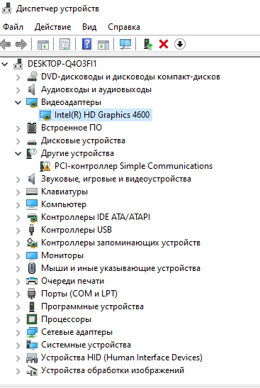 Видеокарта: Intel(R) HD Graphics 4600